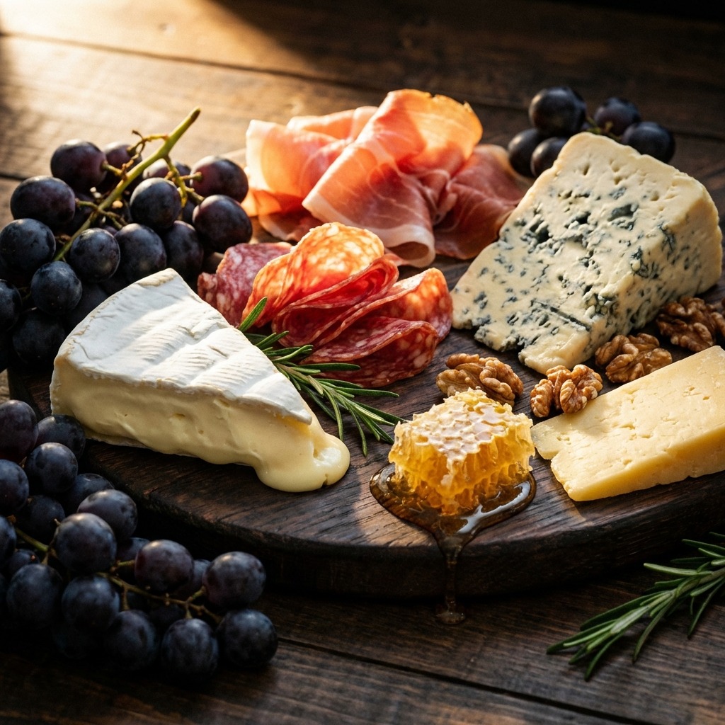 Perfect pairing of savory and sweet with premium cured meats, brie, figs, and champagne grapes.
